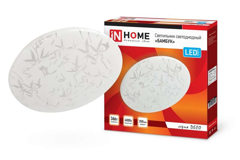 Светодиодный светильник БАМБУК серии DECO от ТМ IN-HOME в светлом матовом корпусе украшен принтом в ..