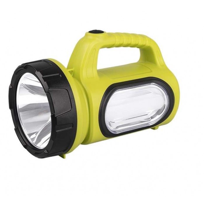 Фонарь-прожектор с боковой светодиодной панелью. 3Вт светодиод в режиме прожектор (160 люмен), 10 х 0,25Вт светодиодов в режиме светильник (50 люмен). Свинцово-кислотный аккумулятор 4В, 1600мАч.