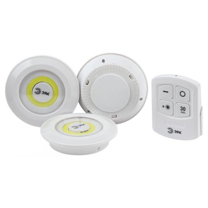 ЭРА Арфа SB-511 АРФА - светодиодный беспроводной фонарь с пультом дистанционного управления, он позволяет включать подсветку и изменять яркость на расстоянии, а также устанавливать таймер работы освещения 30 минут. Состоит из 3 компактных самоклеящихся пушлайтов, которые можно включать и пультом, и нажатием на кнопку в центре корпуса. Монтируются на поверхность без сверления - просто отклейте защитный слой и приклейте фонари. В комплекте настенный держатель для пульта на липучке. Круглая форма, небольшие размеры, малый вес и базовый белый цвет делают ЭРА SB-511 универсальной бытовой подсветкой, которую стоит купить в квартиру, загородный дом, на дачу. Удобно подсвечивать затемненные части комнат, кладовки, шкафы, полки, столешницы под кухонными шкафами. Для работы нужны 12 мизинчиковых батареек: 9 для пушлайтов и 3 для пульта (в комплект не входят). Комплекта алкалиновых батареек хватит на 15 часов непрерывного свечения. В пушлайтах установлены сверхъяркие светодиоды последнего поколения.