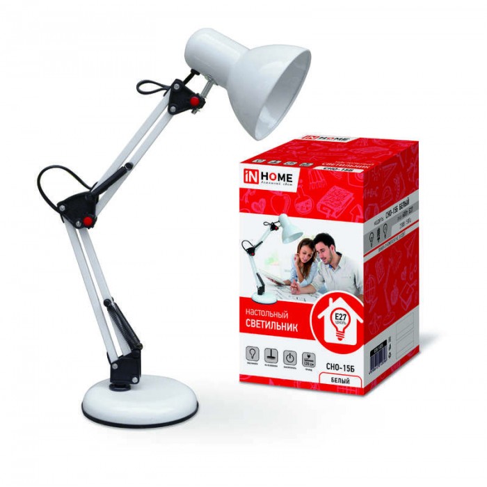 Светильник настольный СНО 15Б 60Вт E27 230В под лампу на основании бел. (кор.) IN HOME 4690612012896