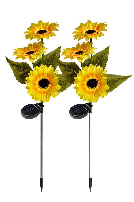 Комплект из 2-х ландшафтных светильников «Подсолнухи» с солнечной батареей. Предназначены для декора..