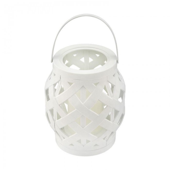 Декоративный фонарь со свечкой в плетеном корпусе белого цвета — стильное, оригинальное и безопасное светодиодное украшение для интерьера. В центре находится фигурка, выполненная в виде восковой свечи. Диод, излучающий б...