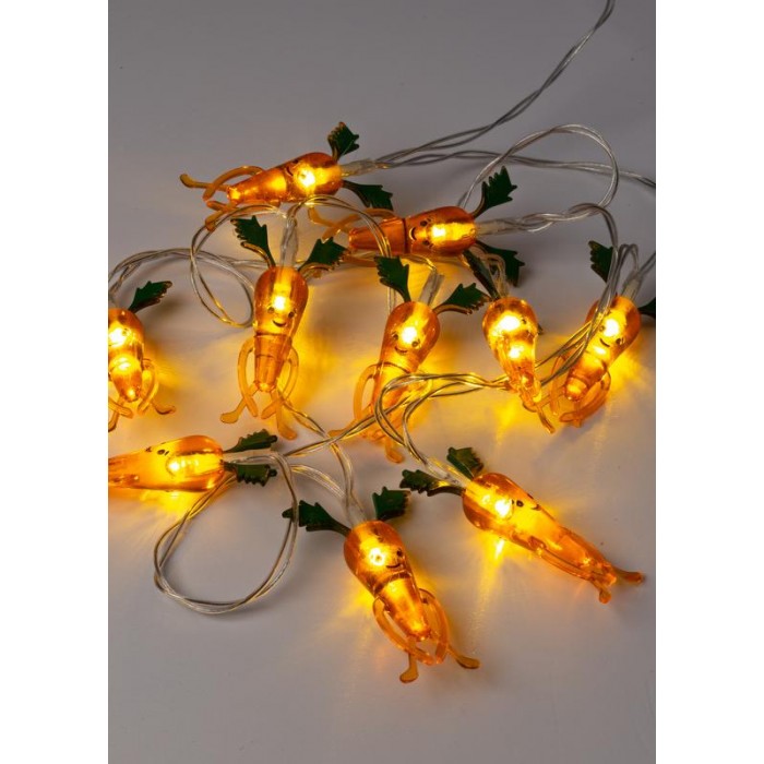 Необычная интерьерныая гирлянда "Морковки" KOC_GIR-B102 из оранжевого акрила с глазками, ручками,ножками оживит детскую, кухню, балкон, привнесет глоток свежего воздуха на рабочем месте. Используйте как ночник или световой декор для полки, журнального столика, подоконника. 10 светодиодов приятного глазу теплого свечения работают от 2х батареек АА. Общая длина около 1,5 метров.