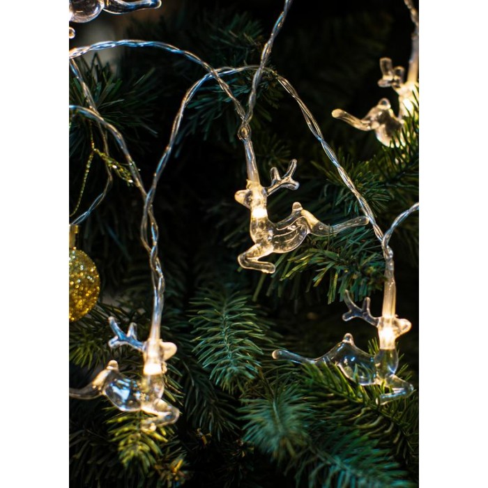 Интерьерная гирлянда "ОЛЕНИ" KOC_GIR-B114 одноцветная, яркая, светится одним теплым светом. 10 фигурок оленей изготовлены из прозрачного акрила (пластика) размером 5*4*0.5см. Гирлянду можно разместить на праздничном столе, камине, полке и дополнить уже украшенную елку. Работает от батареек 2*АА, что удобно и безопасно для взрослых, детей и животных. Гирлянда продлит волшебную атмосфера любимых праздников на все зимние вечера.
