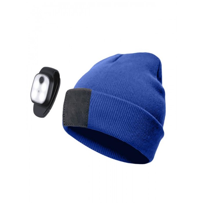 Шапка с фонариком 215х205х5 син. (фонарь 66х50х15мм снимается; аккум. 3.7В/200мА.ч) 3 режима свечения Космос KOCHat_b