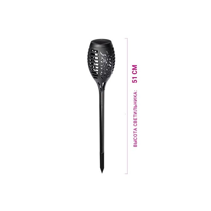 Светодиодный ландшафтный светильник на солнечной батарее, устанавливается в грунт. Предназначен для декоративной подсветки садовых и дачных участков, цветников, дорожек. Автоматическое включение/выключение при наступлении темного/светлого времени суток (датчик освещенности). Время непрерывной работы при полностью заряженном аккумуляторе 5 часов. Время полного заряда аккумулятора: 8-10 часов. Высота светильника в собранном виде 51 см.