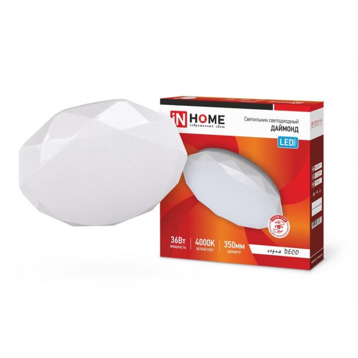 Светильник светодиодный DECO ДАЙМОНД 36Вт 4000К 3240лм 230В 380х55мм IN HOME 4690612033716