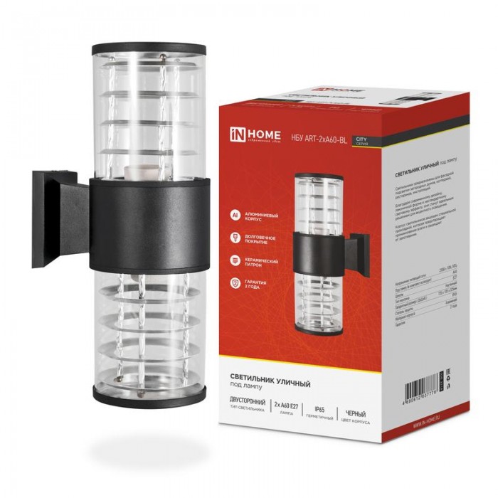 Оригинальные уличные светильники ART-2xA60-BL от ТМ In Home предназначены для работы со светодиодными лампами E27. Линейка представлена в двух цветах (черный и серый) и двух вариантах исполнения (односторонний и двусторо...