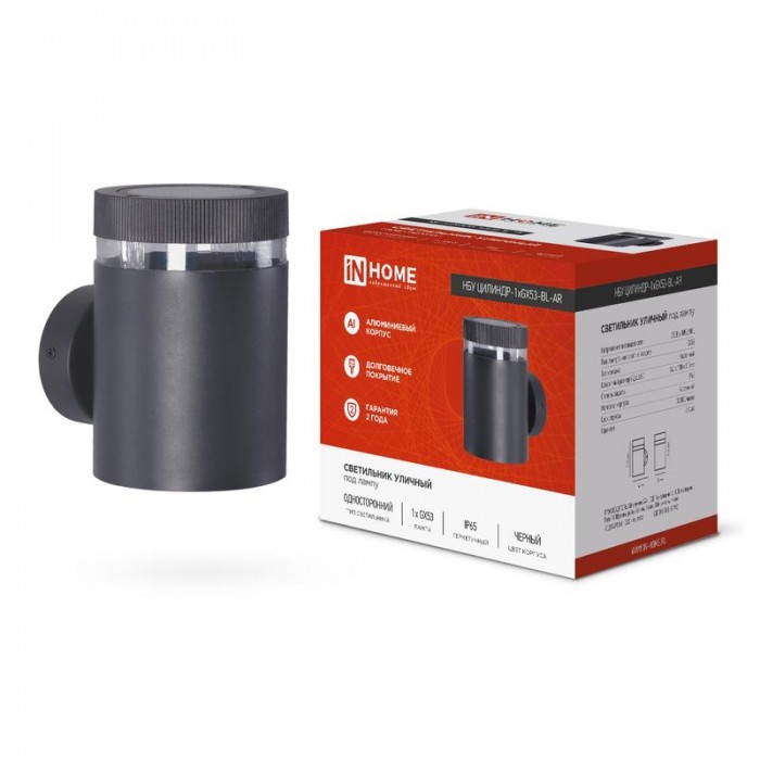 Светильник НБУ ЦИЛИНДР-1хGX53-BL-AR IP65 уличный настен. односторон. под лампу 1хGX53 алюм. черн. IN HOME 4690612044668