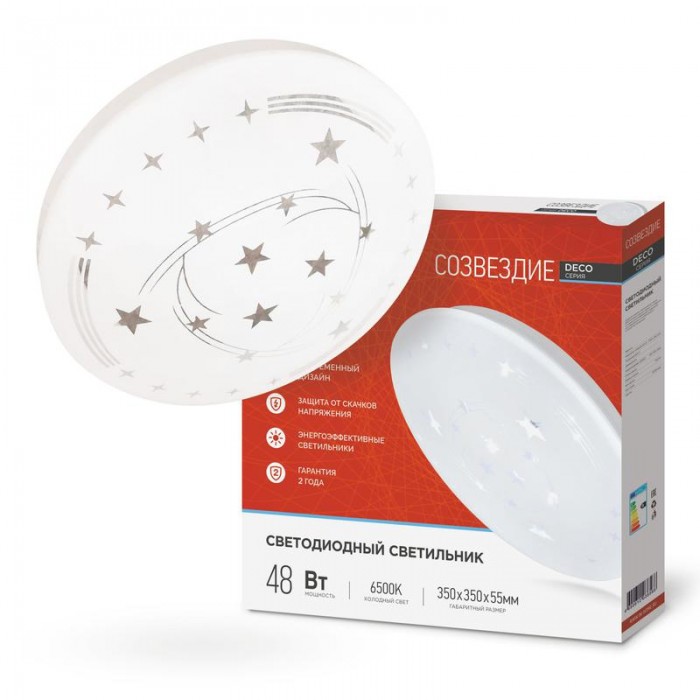 Светодиодный светильник серии DECO от компании In Home с динамичным рисунком в виде хоровода созвездий станет удачным дополнением жилого интерьера. Линейка светильников СОЗВЕЗДИЕ представлена в диапазоне мощностей от 12 Вт до 48 Вт, что позволяют подобрать оптимальный осветительный прибор, в зависимости от конфигурации и габаритов помещения. Светодиодные светильники СОЗВЕЗДИЕ серии DECO предназначены для внутреннего освещения жилых помещений, подъездов и сферы ЖКХ, офисных и административных учреждений, магазинов, а также холлов, коридоров, лестничных пролётов, подсобок и других помещений вспомогательного назначения. Современные светильники серии DECO, работающие на основе последнего поколения светодиодов, обеспечивают яркий равномерный световой поток при максимальной экономии электроэнергии. Отсутствие пульсации гарантирует сохранность здоровья глаз. Светодиодные светильники являются одним из самых экологически безвредных источников света и не требуют специальной утилизации и переработки.