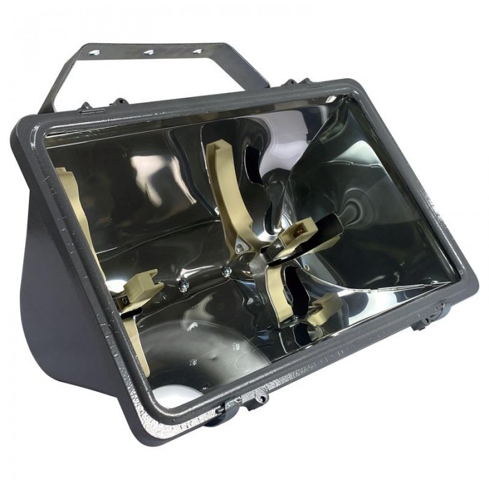 Светильник предназначен для освещения фасадов зданий, сооружений, архитектурных монументов, автостоянок, стройплощадок, карьеров и других открытых и внутренних пространств. Корпус и рамка выполнены из алюминиевого сплава методом литья под давлением, не подвержен коррозии, хорошо отводит тепло, продлевая срок работы лампы. Стекло закаленное, термостойкое обеспечивает пылевлагозащищенность IP65. Отражатель из светоотражающего материала Alanod, параболический, с двумя плоскостями симметрии. Рассчитан для работы с кварцево-галогенными лампами КГ. Патрон R7s. Способ крепления, на поворотную скобу.