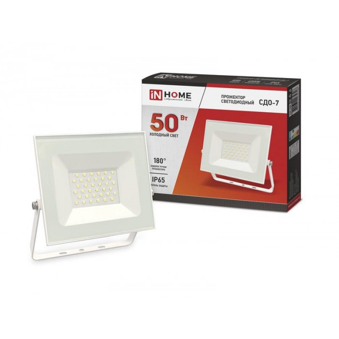 Прожектор светодиодный СДО-7 50Вт 6500К IP65 4500лм 230В бел. IN HOME 4690612034706