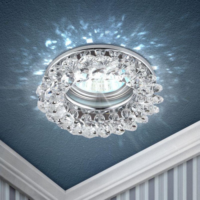 Встраиваемый светильник DK16 CH/WH круглый с мелкими хрусталиками станет эффектным решением для любого помещения: его можно разместить в спальне, в детской или на кухне. Светильник подходят как для базового освещения, т...