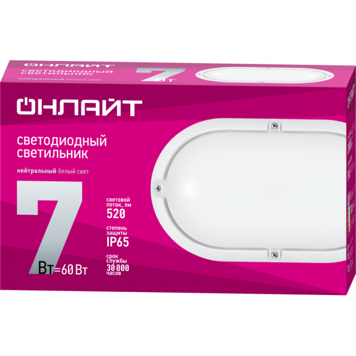 Светильник светодиодный 71 687 OBL-O1-7-4K-WH-IP65-LED 7Вт 4000К IP65 520лм ЖКХ овал бел. (аналог НПП) ОНЛАЙТ 71687 426819...