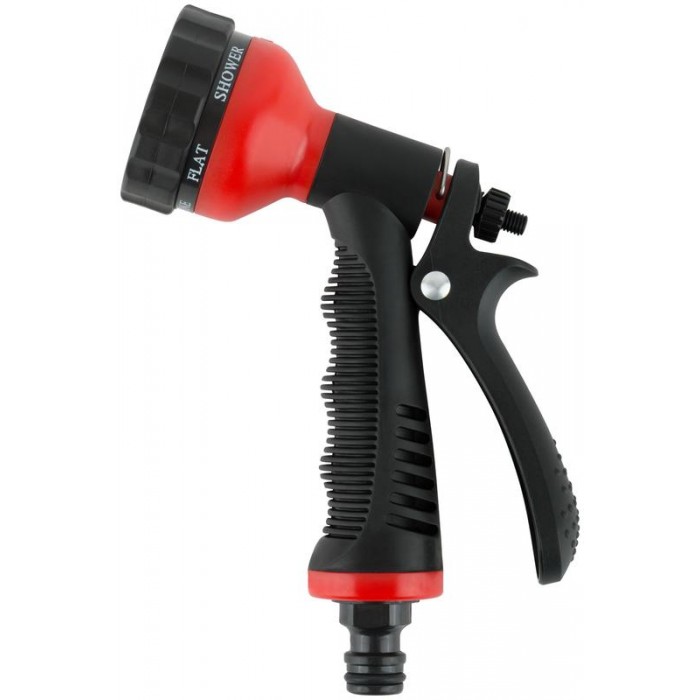 6 режимов распыления. Скоба-фиксатор для непрерывной подачи воды. Универсальное быстросъемное соединение. Материал: пластиковый корпус, обрезиненная ручка. Упаковка: блистер.