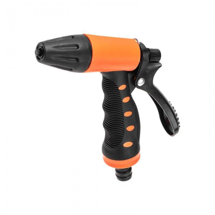Пистолет-распылитель представляет собой садовый аксессуар, предназначенный для полива растений и почвы. Компактный и эргономичный дизайн обеспечивает комфортное использование даже на протяжении длительного времени. Ширина струи регулируется посредством поворота сопла. Быстроразъемный разъем способствует быстрому и легкому подключению к любой системе полива. Изделие надежно и герметично крепится к шлангу при помощи универсального соединителя, расположенного на конце пистолета.