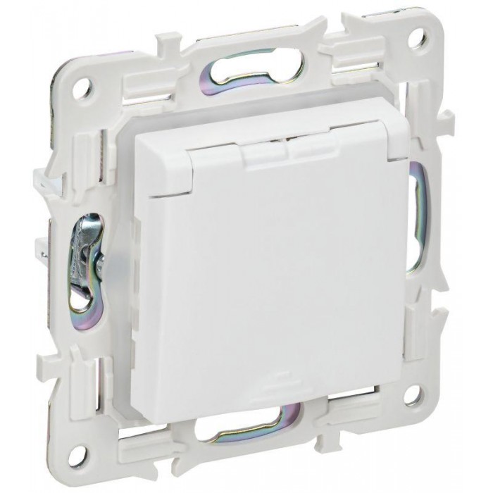 Розетка 1-м SKANDY 16А IP44 с заземл. защ. шторки с крышкой SK-R11W арктич. бел. IEK SK-R16-16-44-K01