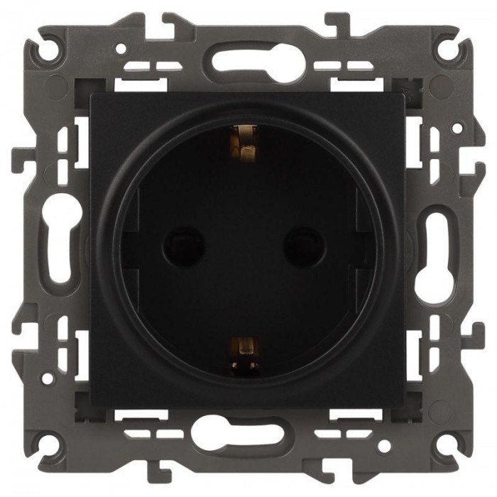 Розетка с заземлением со шторками Эра Elegance антрацит 14-2102-05. Оснащёна автоматическими клеммами для надёжной фиксации жил кабеля в механизме. Рамки приобретаются отдельно. Рамки Эра Elegance ПЛАСТИК: 1 пост 14-5001...
