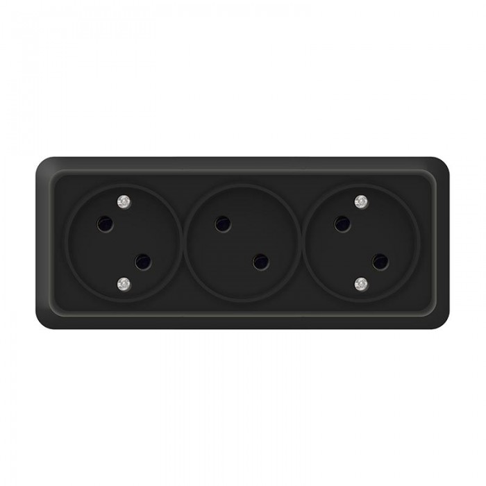 Розетка 3-м ОП Олимп 16А IP20 без заземл. черн. Universal 2217