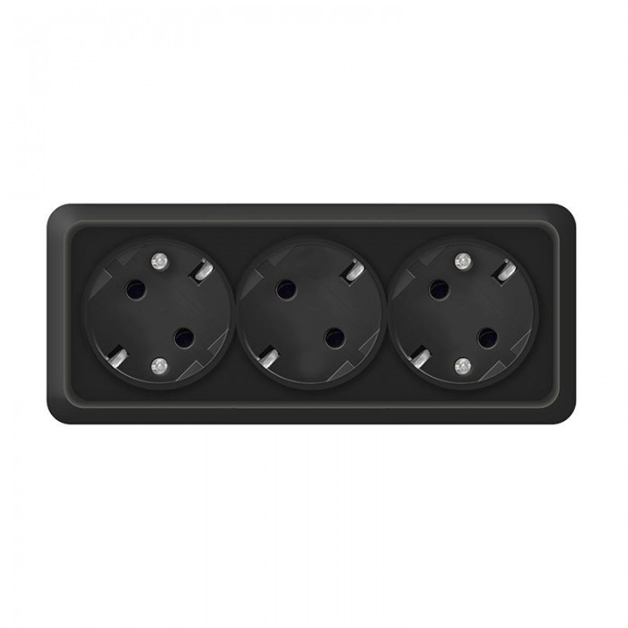 Розетка 3-м ОП Олимп 16А IP20 с заземл. черн. Universal 2218