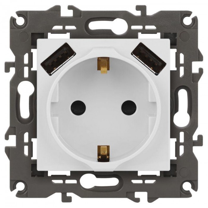 Розетка с USB серии Эра Elegance цвет белый матовый 14-4109-01М. Номинальные характеристики силовой розетки 16А 250В, разъемов USB 3А 5В. Оснащена автоматическими клеммами для надёжной фиксации жил кабеля в механизме....