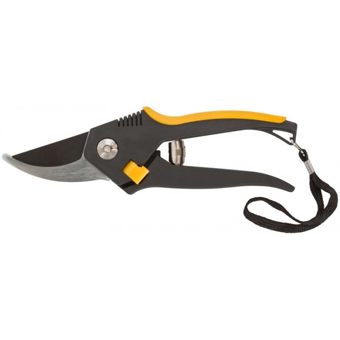 «Люкс». С ленточной пружиной. Тип А: режущие кромки внахлест. Для обрезания побегов и веток толщиной до 20 мм. Материал: лезвия из высокоу- глеродистой инструментальной стали с тефлоновым покрытием, пластиковые прорезиненные ручки.