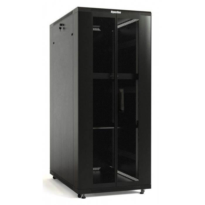 Шкаф TTB-4781-DD-RAL9004 напол. 19дюйм 47U 2277х800х1000мм передн. и задн. распашные перфор. двери (75%) ручка с замком крыша нового типа (RAL 9004) (разобранный) черн. Hyperline 392700 509857...