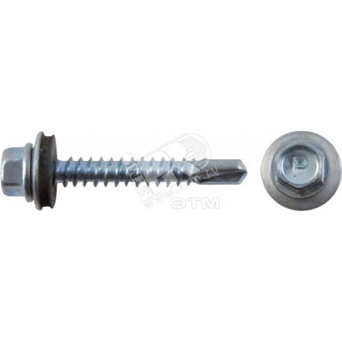 Шуруп саморез кровельный - сверлоконечный (с буром) саморез с мелким шагом резьбы и шестигранной головкой оснащенный шайбой ЕРDM, предотвращающей попадание влаги сквозь монтажное отверстие.