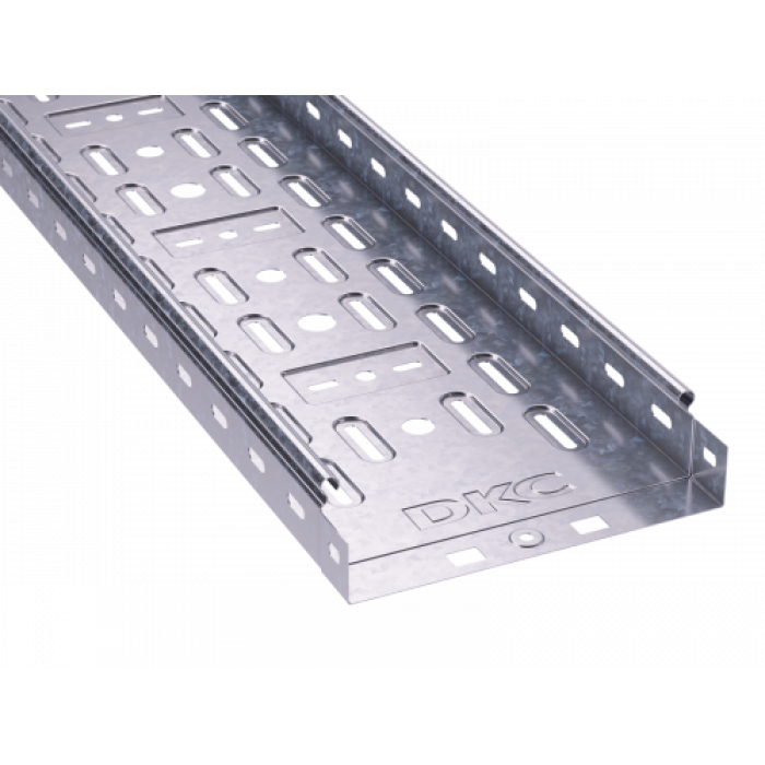 Перфорированные листовые лотки ДКС применяются для прокладки кабеля как в помещении, так и на открытом воздухе. Лотки отличаются высокой несущей способностью – подформовка, производимая при производстве этой продукции, создает дополнительное ребро жесткости, что увеличивает несущую способность системы до 54%. Перфорация сокращает вес конструкции. В лотках имеются отверстия для отвода кабеля диаметром 11 мм, 17 мм, 21 мм. Степень пыле- и влагозащиты перфорированных лотков – IP 10 при использовании крышек, входящих в состав системы. Метод соединения "мама-папа" применяемый для системы, существенно сокращает время монтажа и создает непрерывный контур. Конструктив листовых лотков ДКС предупреждает повреждение кабеля при прокладке. Толщина стали – 0,7 мм, высота лотка – 50 мм, ширина – 200 мм, длина – 2000 мм. Полезное сечение – 9800 мм. Исполнение – "сталь, оцинкованная по методу Сендзимира".
