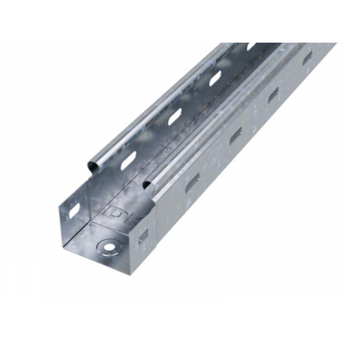 Перфорированные листовые лотки ДКС применяются для прокладки кабеля как в помещении, так и на открытом воздухе. Лотки отличаются высокой несущей способностью – подформовка, производимая при производстве этой продукции, создает дополнительное ребро жесткости, что увеличивает несущую способность системы до 54%. Перфорация сокращает вес конструкции. В лотках имеются отверстия для отвода кабеля диаметром 11 мм, 17 мм, 21 мм. Степень пыле- и влагозащиты перфорированных лотков – IP 10 при использовании крышек, входящих в состав системы. Метод соединения "мама-папа" применяемый для системы, существенно сокращает время монтажа и создает непрерывный контур. Конструктив листовых лотков ДКС предупреждает повреждение кабеля при прокладке. Толщина стали – 0,7 мм, высота лотка – 50 мм, ширина – 50 мм, длина – 2000 мм. Полезное сечение – 2500 мм. Исполнение – "сталь, оцинкованная по методу Сендзимира".