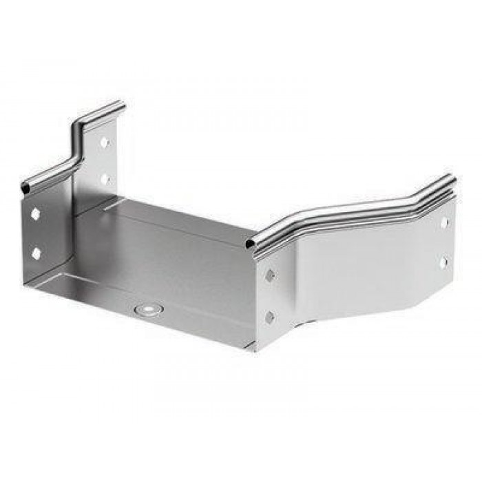 Элементы, входящие в состав системы "S5 Combitech" позволяют предусмотреть любые особенности проектирования и монтажа трассы. При построении кабельных трасс может возникать ситуация, когда требуется увеличить или уменьшить ширину лотка. Для этого применяется переходник (редукция) – аксессуар, имеющий разную ширину в начале и в конце. Симметричная редукция – аксессуар, симметричный относительно средней линии, проходящей вдоль его длины. Этот элемент обеспечивает расширение кабельной трассы со 100 мм до 200 мм или же ее сужение. Максимальная степень пыле- и влагозащиты – IP 44 (при использовании вместе с крышкой и уполотнителями). Высота - 50 мм. В состав комплектного аксессуара входят необходимые крепежные элементы и соединительные пластины. Исполнение – "Горячий цинк". Это специальное исполнение, которое отличается повышенной устойчивостью к коррозии. Изделия с таким покрытием можно применять даже в условиях агрессивной среды, повышенной влажности, солевого тумана.