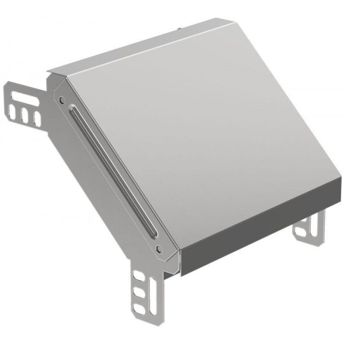 Поворот на 90° вертикальный внешний служит для организации вертикального поворота кабельной трассы на 90°. Данный аксессуар поставляется в комплекте с крышкой. Все аксессуары для металлических лотков изготовлены из стали горячего цинкования методом Сендзимира (защитный слой цинка 10-20 мкм).