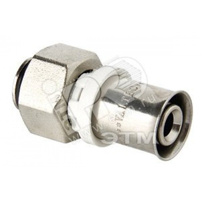 Латунный никелированный пресс-фитинг с переходом на резьбовое соединение с помощью накидной гайки. Предназначен для подключения металлопластиковой трубы или полиэтиленовой трубы размером 16 х 2.0 мм к коллекторам, коллекторным блокам, радиаторным клапанам и узлам, имеющим выходы стандарта `евроконус` 3/4`.Уплотнение штуцера со стороны накидной гайки – с помощью двух колец из синтетического каучука EPDM. Рассчитан на применение в системах с максимальной рабочей температурой 110 градусов и давлением до 10 бар.