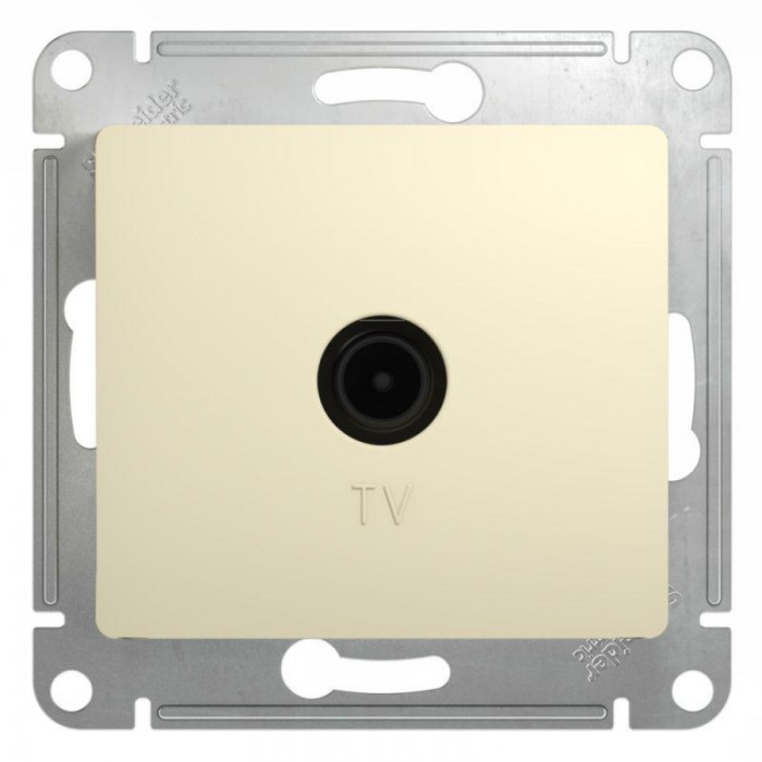 Механизм Systeme Electric (ранее Schneider Electric) серии Glossa (цвет бежевый) розетки TV проходной 4DB ппредназначен для подключения телевизора к телевизионной сети. - Проходная розетка используется в начале и середине подключения «в линию». - Выполнен из материала PС+ASA, стойкого к УФ-излучению и появлению царапин.