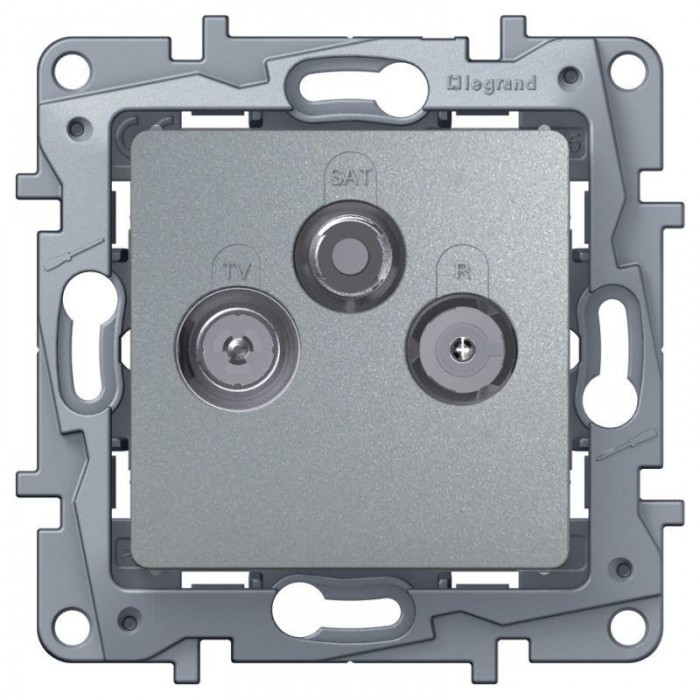 Розетка телевизионная TV/R/SAT СП Etika Plus 2дБ 0-2400МГц с топологией "звезда" механизм алюм. Leg 672456 1066942
