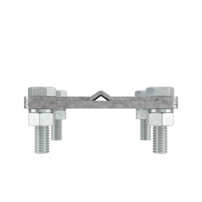 Соединитель "пруток - полоса" с разделительной пластиной используется для параллельного либо крестового соединения прутка 8-10 мм с полосой 25-50 мм. Материал - горячеоцинкованная сталь.