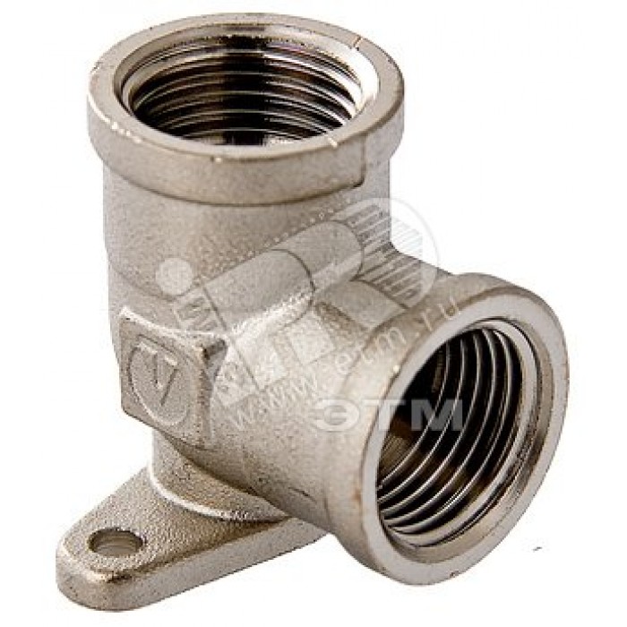 Латунный никелированный угольник с креплением. Резьба - внутренняя/внутренняя, цилиндрическая трубная по ГОСТу 6357 (ISO 228, EN 10226), совместима также с наружной конической трубной резьбой по ГОСТу 6211 (ISO R7). Прис...