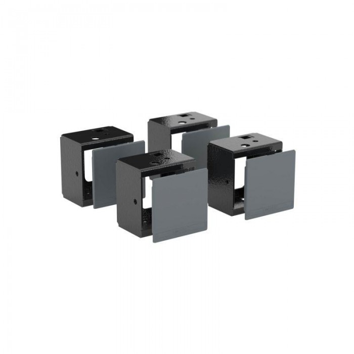 Цоколь к корпусу заказывается отдельным кодом. Он состоит из фланцев и угловых элементов. Фланцы универсальны - они могут устанавливаться как по ширине, так и по глубине шкафа. Цельносварные угловые элементы изготавливаются из оцинкованной стали толщиной 2,5 мм. Цоколь имеет порошковое покрытие RAL9005. Высота: 100 мм