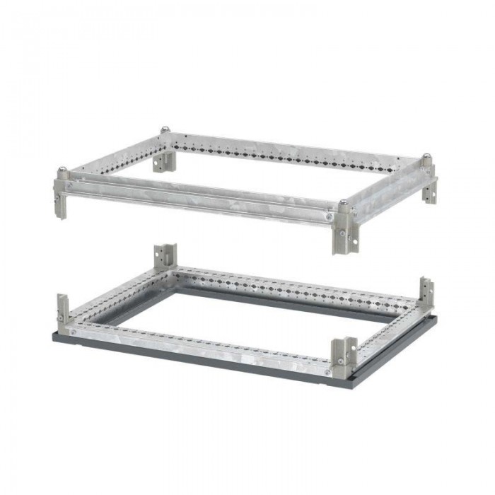 Комплект оцинкованной рамы крыши и дна для соединения с вертикальными стойками и сборки напольных шкафов CQE N шириной 800 и глубиной 800 мм. Юбка дна окрашена в цвет RAL 7011....