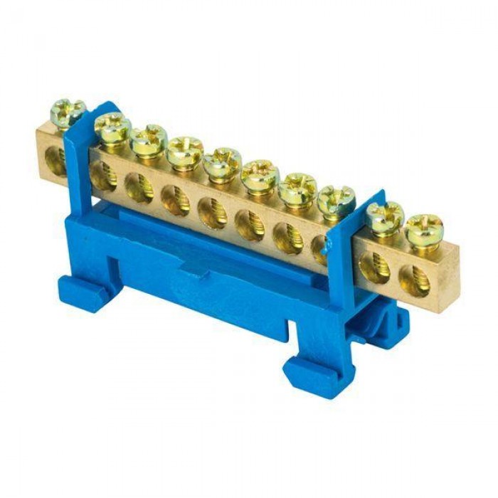 Шина нулевая N 6х9 10 отверстий синий изолятор тип "Стойка" на DIN-рейку латунь PROxima EKF sn0-63-10-sb