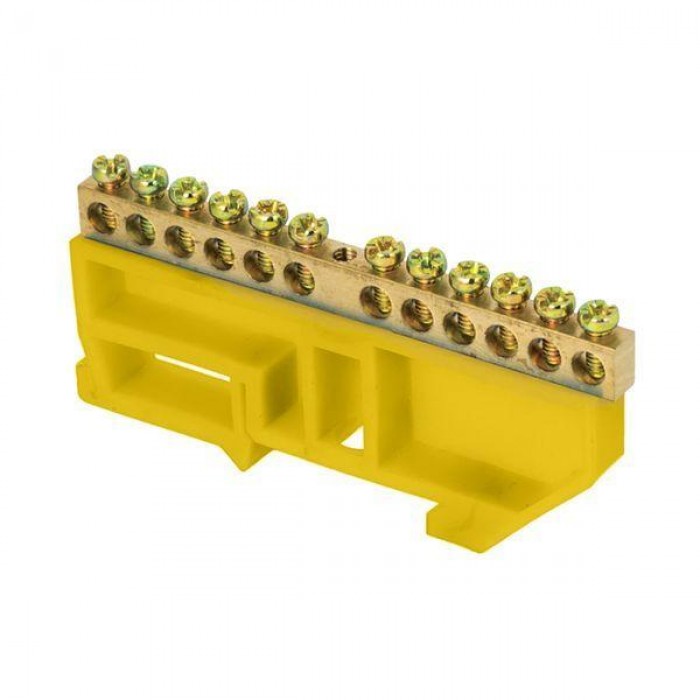 Шина нулевая N 6х9 12 отверстий желт. изолятор на DIN-рейку латунь PROxima EKF sn0-63-12-dz